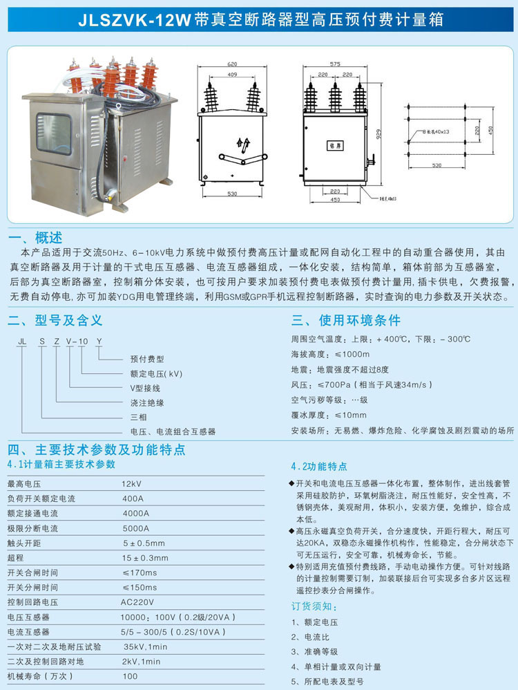 JLSZK-12W2帶真空斷路器型高壓預付費計量箱